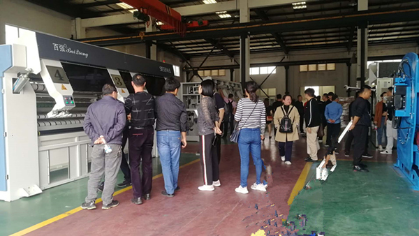 此次,上海百強(qiáng)洗滌設(shè)備制造有限公司由于特殊原因沒有在洗滌展設(shè)立專門的展位,而是以一種特殊的模式參與中國洗滌展。這種方式就是以廠為展,在廠區(qū)內(nèi)設(shè)立設(shè)備展位,如130kg傾斜式洗脫機(jī)、節(jié)能烘干機(jī)、高速燙平機(jī)、高速折疊機(jī)、四工位展布機(jī)等等,還有一臺(tái)燃?xì)鉅C平機(jī)(作為本次展會(huì)的隱藏設(shè)備)。