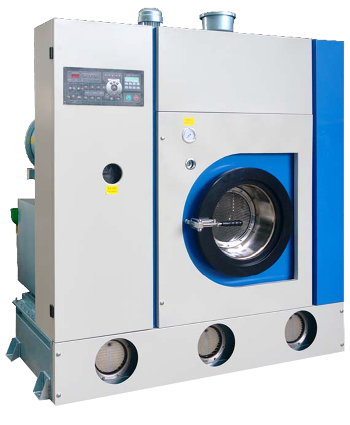 石油干洗機(jī):由洗滌、烘干回收、過濾、蒸餾、外殼、前門、溶劑儲存箱、鈕扣收集器、各種傳感器、電腦控制和氣動系統(tǒng)等組成。