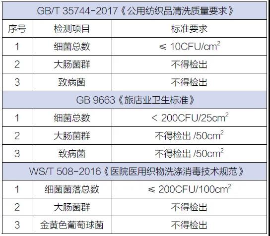 ▲醫(yī)用織物和酒店織物洗滌后的衛(wèi)生標(biāo)準(zhǔn)